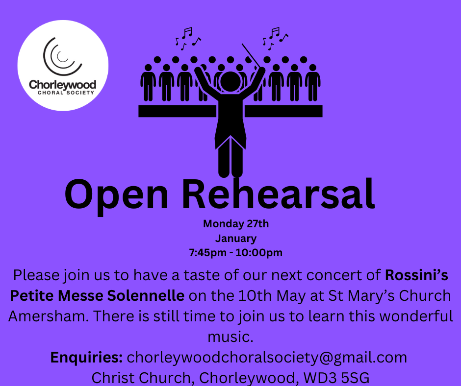 After our Come and Sing event on Saturday, we shall be holding an Open Rehearsal on Monday 27th, Please join us to learn more movements from the wonderful Petite Messe Solennelle by Rossini.